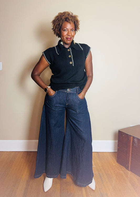 Polo Collar Knit Sleeveless Sweater Top Camille