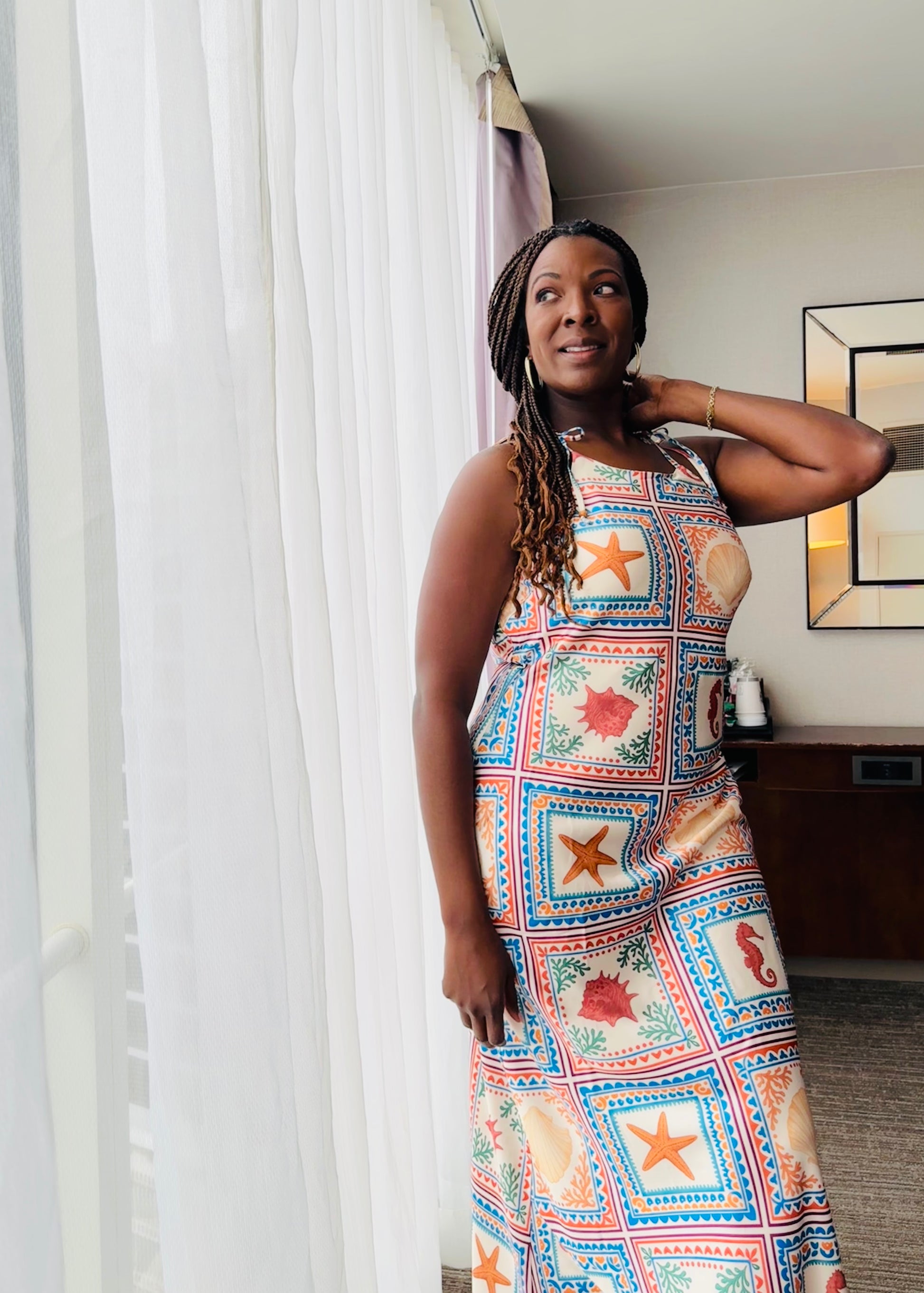 The Aegean Satin Mosaic Halter Maxi Dress captures the spirit of coastal summers with an artful mosaic print and an elegant halter neckline. Crafted from a mid-weight satin with a substantial, quality feel, this dress drapes smoothly without feeling flimsy, creating a polished, elongated silhouette.