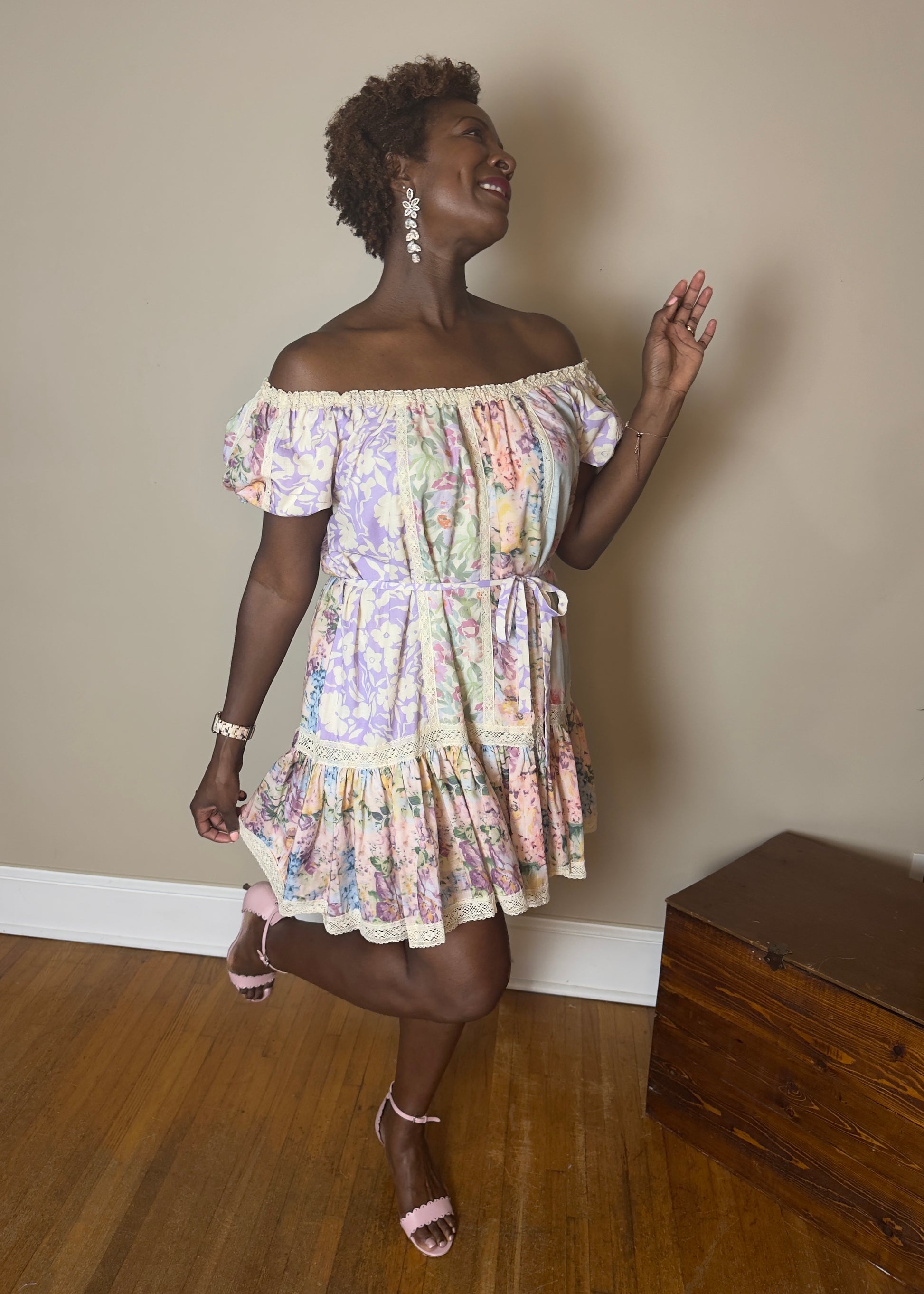 Flirty, feminine, and full of charm—the Britney Marie Multicolor Floral Print Dress is your next warm-weather favorite. Designed with a soft off-the-shoulder neckline and adjustable spaghetti straps to help keep everything in place, this knee-length dress features a tiered silhouette with delicate lace trim that adds the perfect touch of romance.