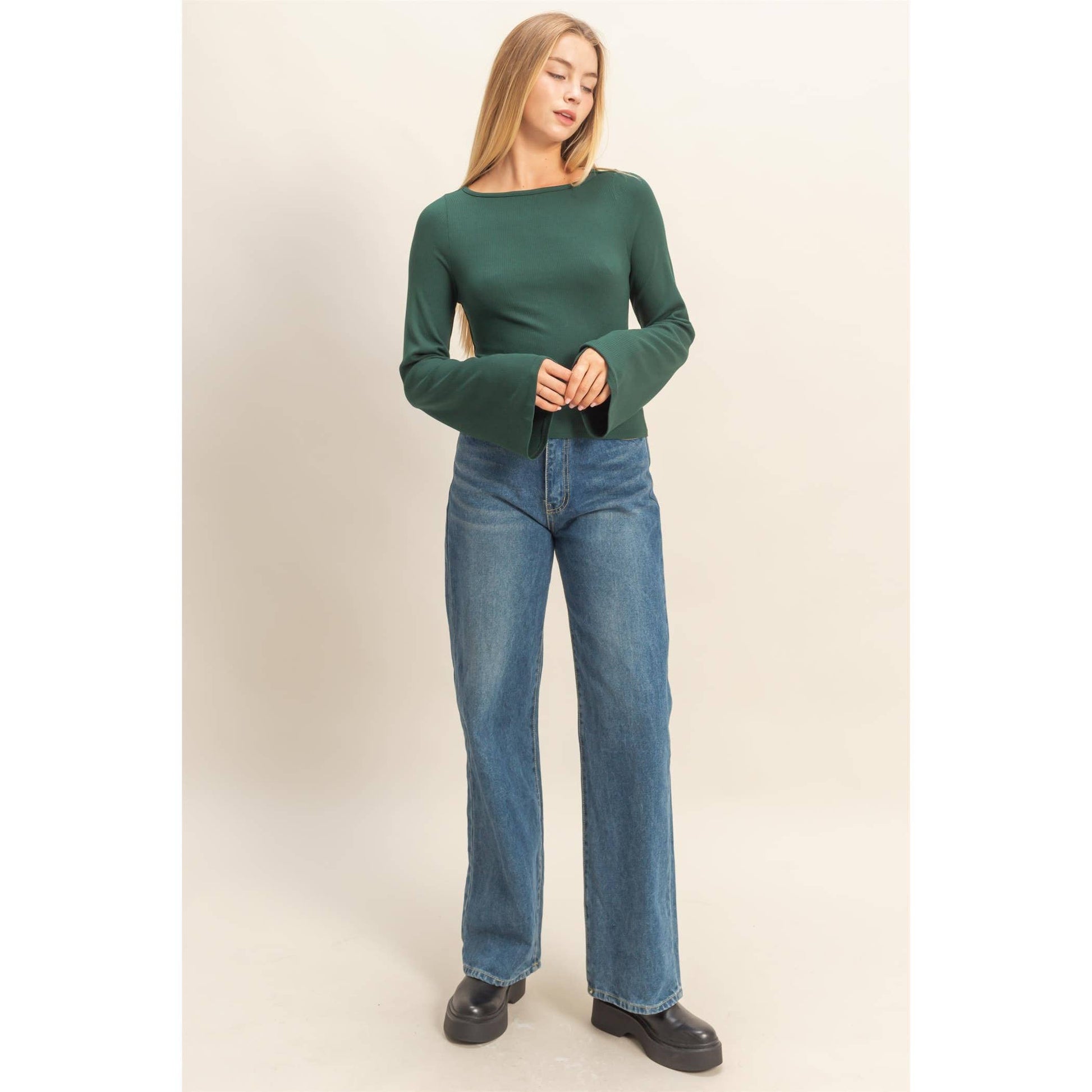 Long Bell Sleeve Ribbed Knit Top - Everly