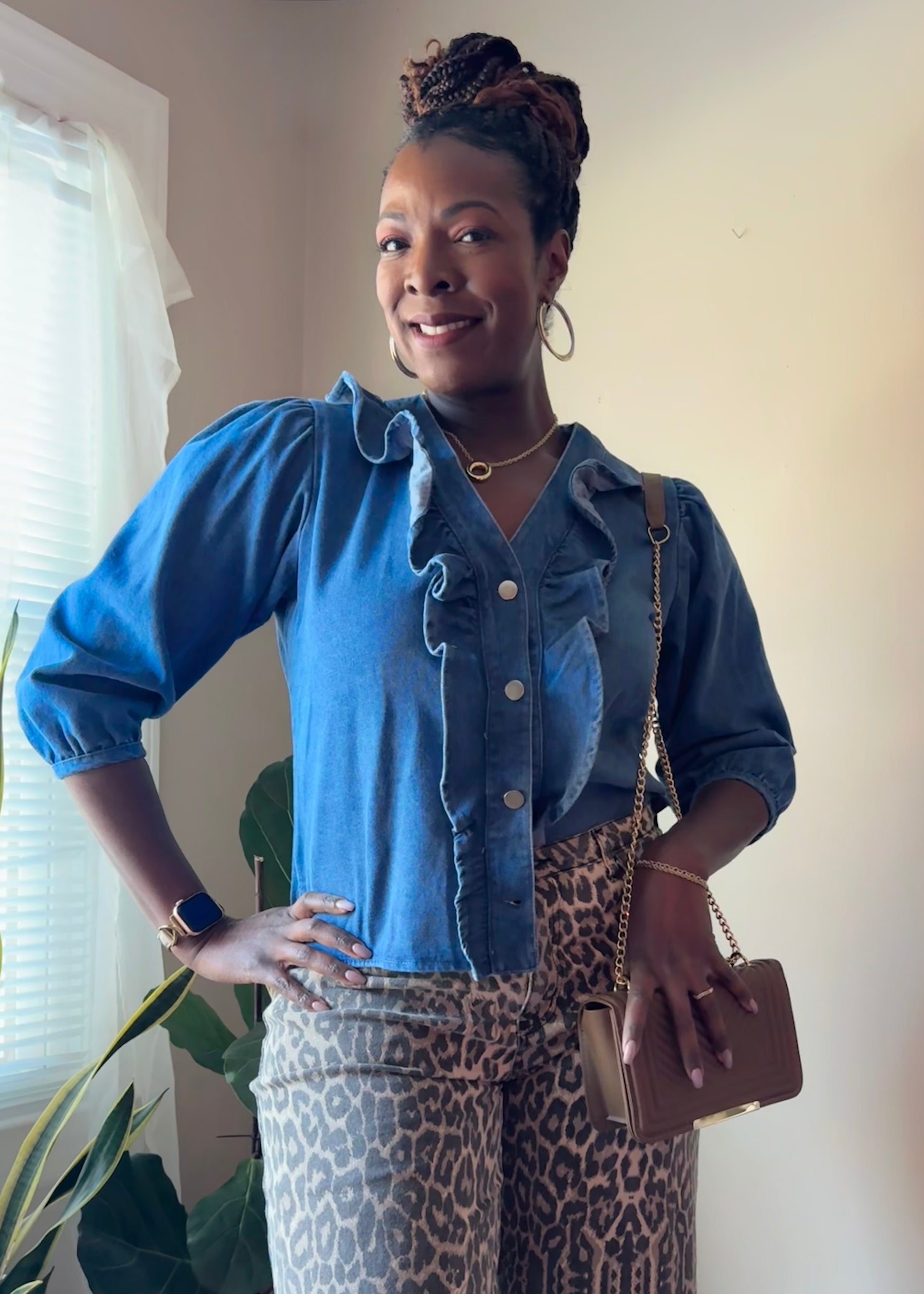 Ruffled 3/4 Sleeve Denim Blouse – Elana