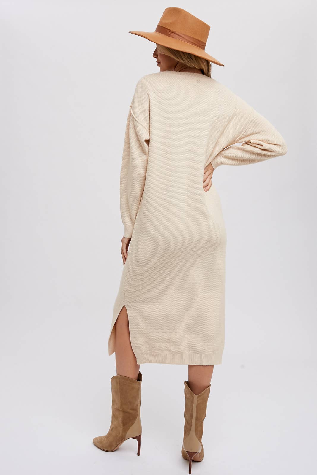 With its drop shoulder design, the dress offers a relaxed and slightly oversized fit, providing both comfort and a modern aesthetic. The Waffle Knit fabric adds texture and depth to the dress, making it a cozy and fashionable option for various occasions. -