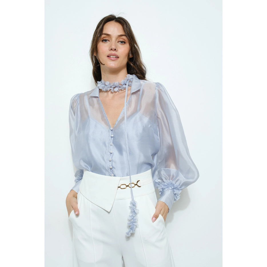 Cathie Sheer Long Sleeves Button-Up Blouse