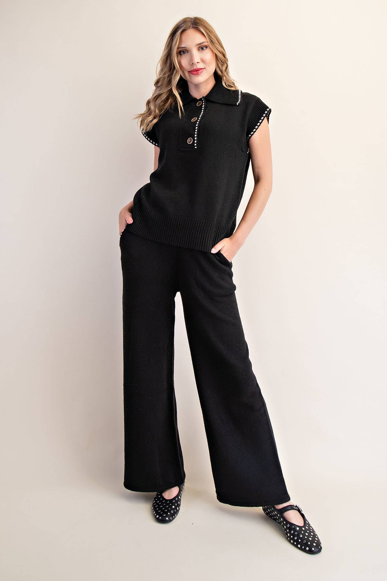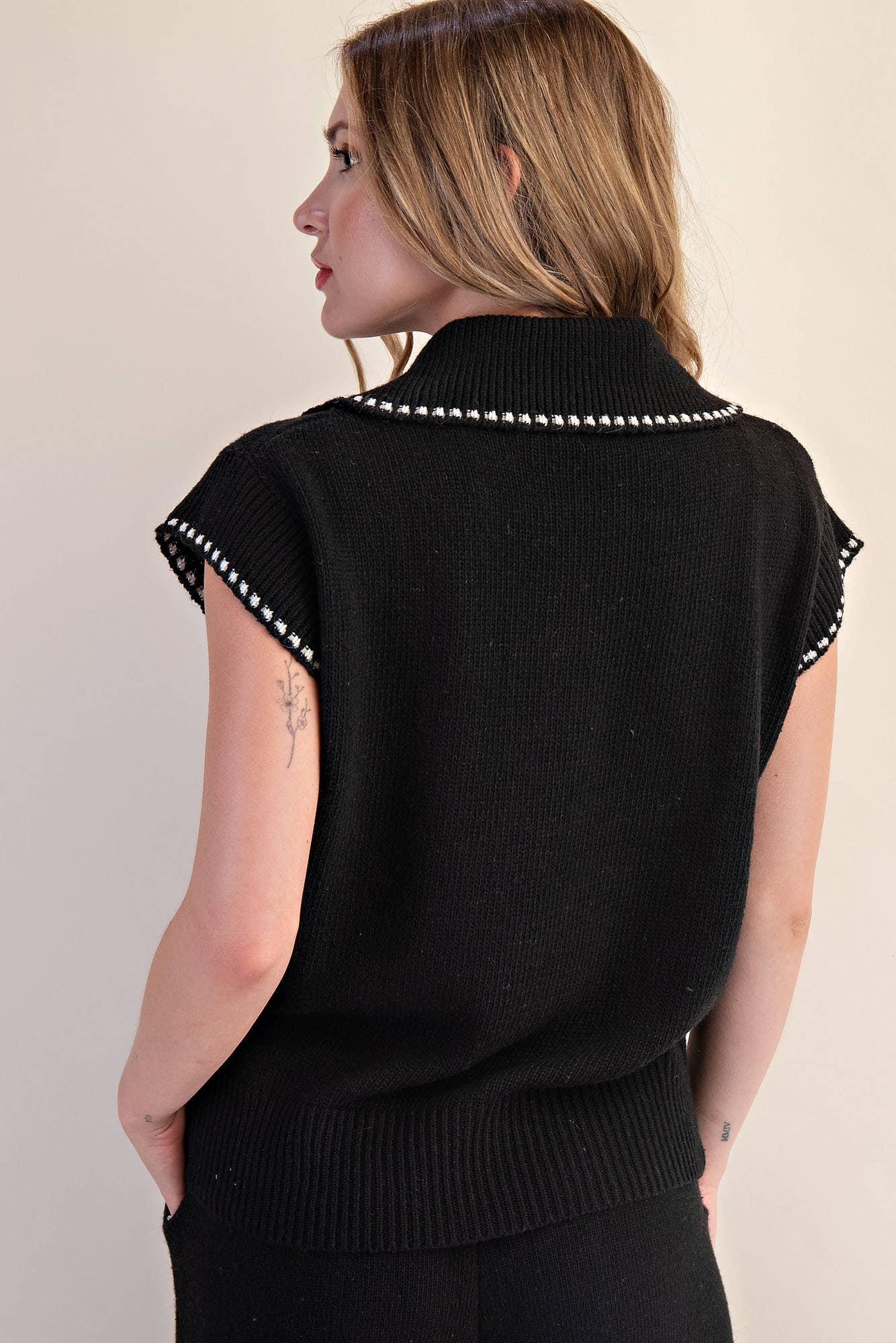 Polo Collar Knit Sleeveless Sweater Top Camille
