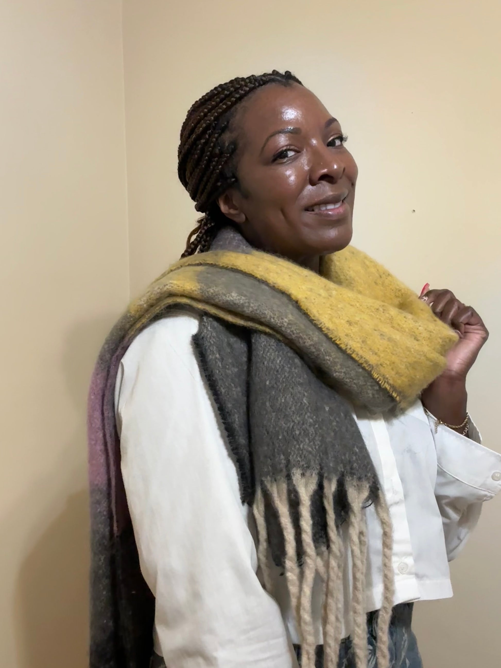 Soft, sculptural, and luxuriously cozy. The Abstract Brushstroke Scarf features a brushed, cashmere-feel knit with modern painterly color blocking. It drapes beautifully as a wrap, scarf, or travel layer — the perfect finishing touch for elevated fall and winter outfits.