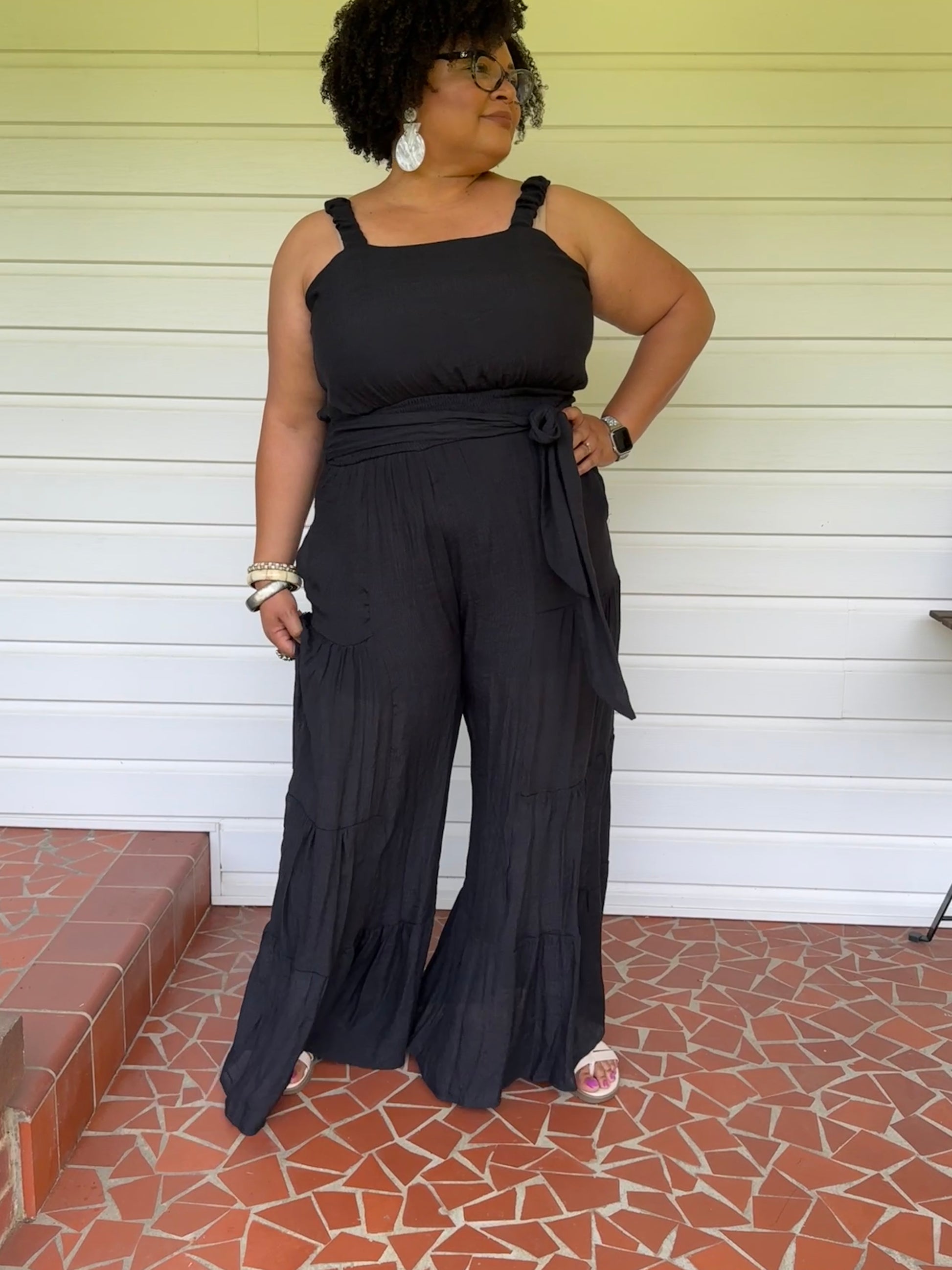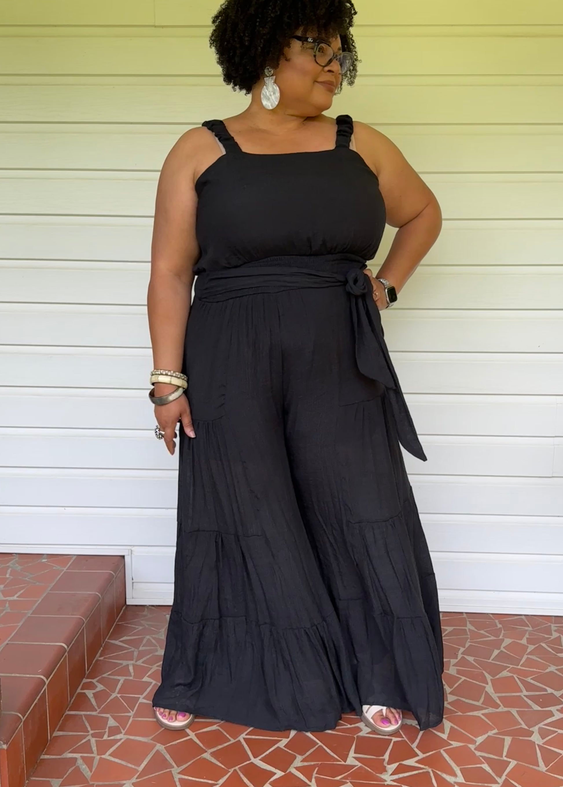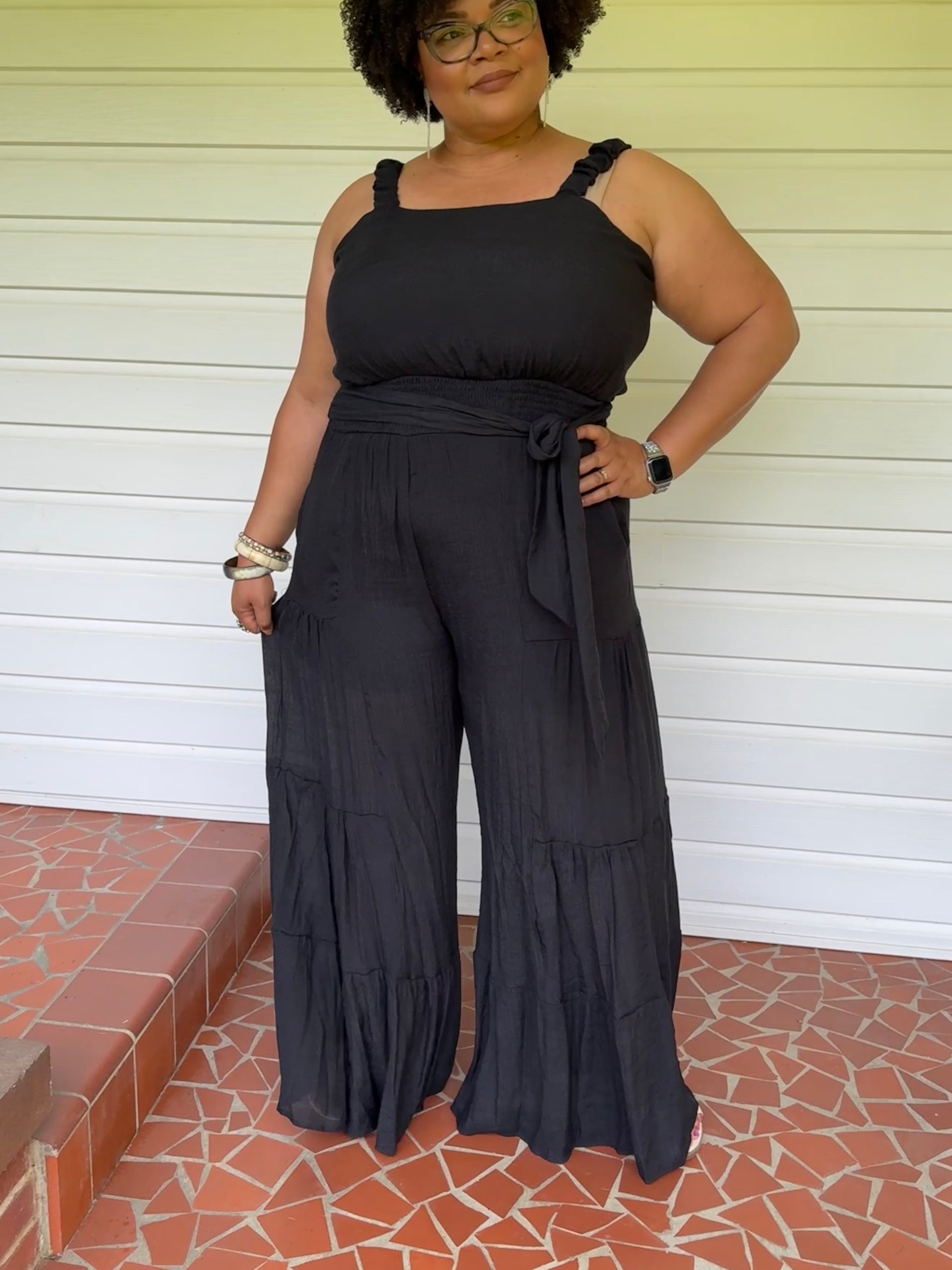 PLUS - ELASTIC STRAP TIERED JUMPSUIT
