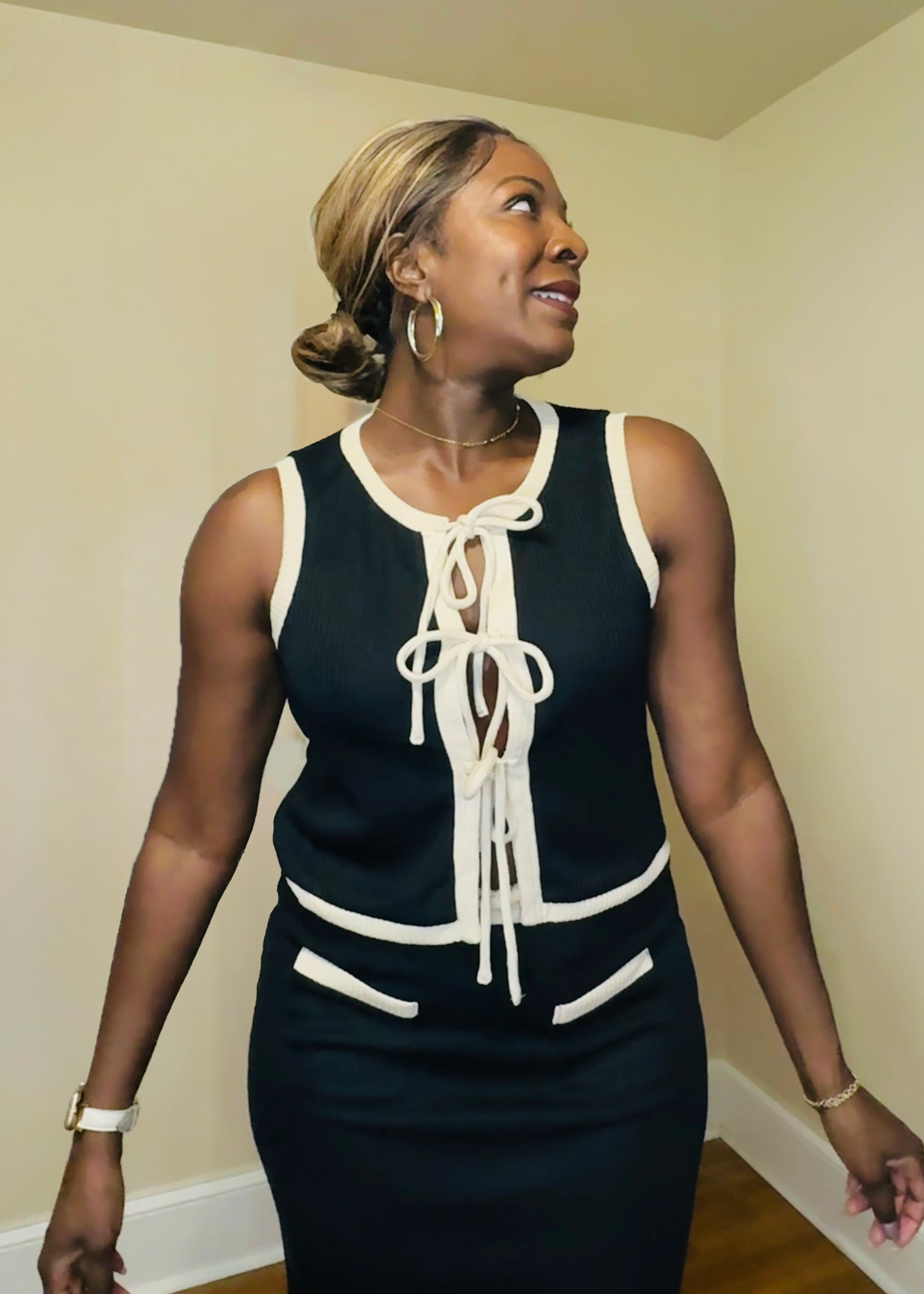 Designed for effortless polish with relaxed sophistication, this knit vest and skirt set blends modern ease with thoughtful detailing. Ideal for your next vacation, brunch, dates and elevated everyday wear, it offers a refined yet comfortable silhouette that moves seamlessly through your day.