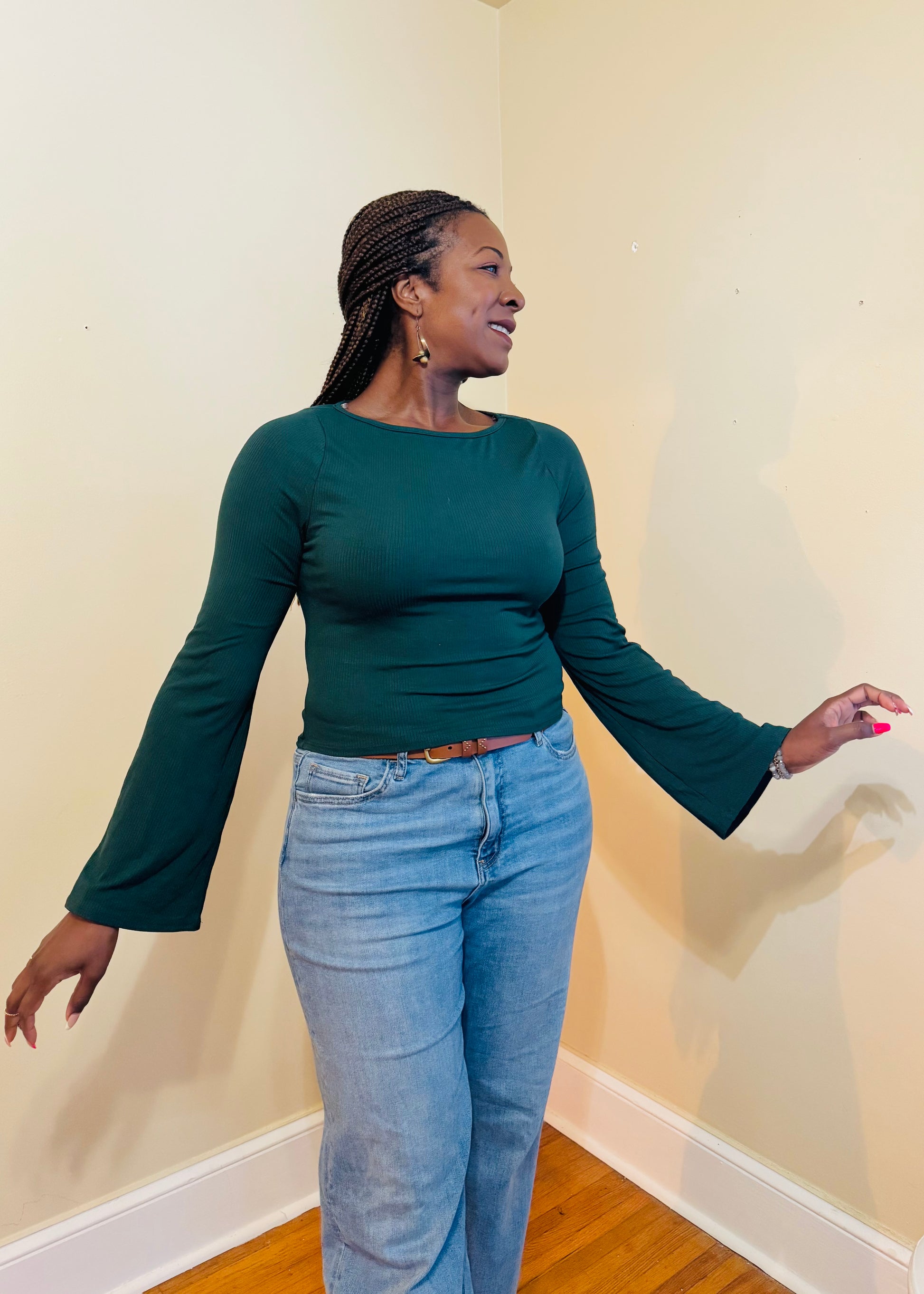 Long Bell Sleeve Ribbed Knit Top - Everly
