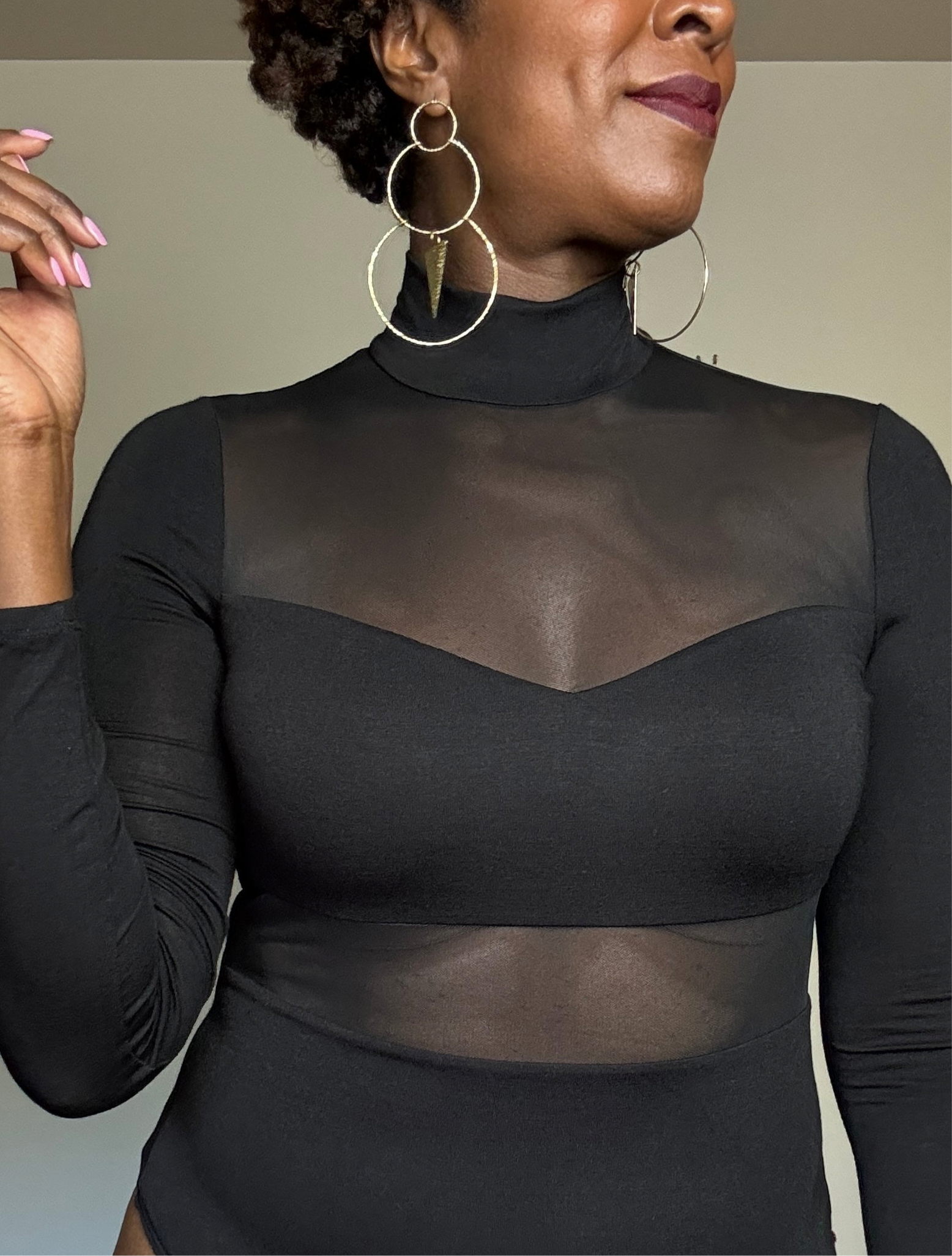 Catalina Long Sleeve Bodysuit With Mock Neck Mesh