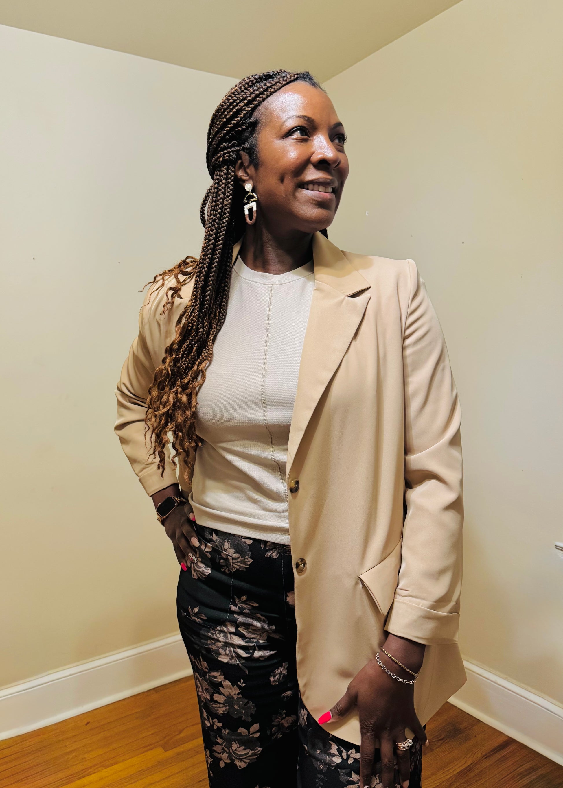 The Avery Oversized Tailored Blazer delivers chic structure with effortless versatility. Designed in a relaxed, slightly oversized fit, it features a classic notched lapel, flap pockets, and a single-button closure for a modern take on tailoring. Wear it over dresses for an elevated evening look, or pair it with denim and knits for everyday sophistication. Avery is the piece that instantly sharpens any outfit.