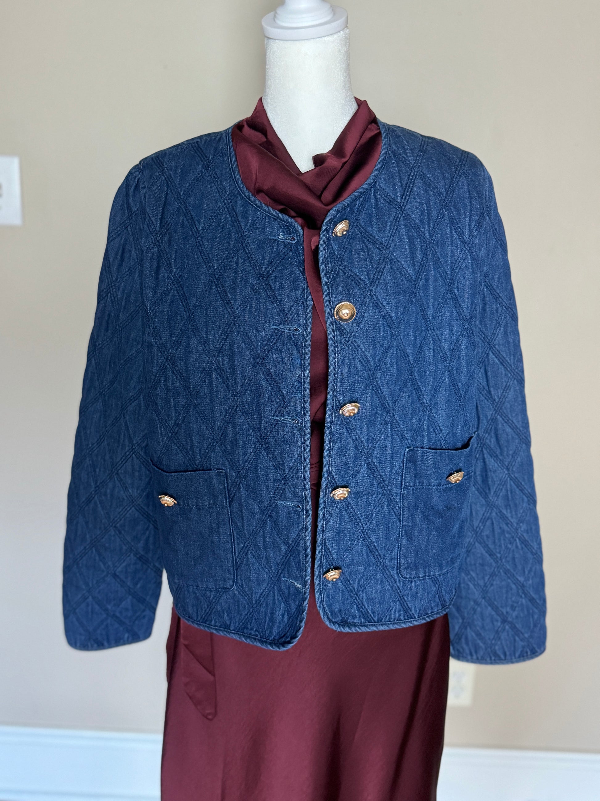 Quilted Denim Collarless Jacket – Austin