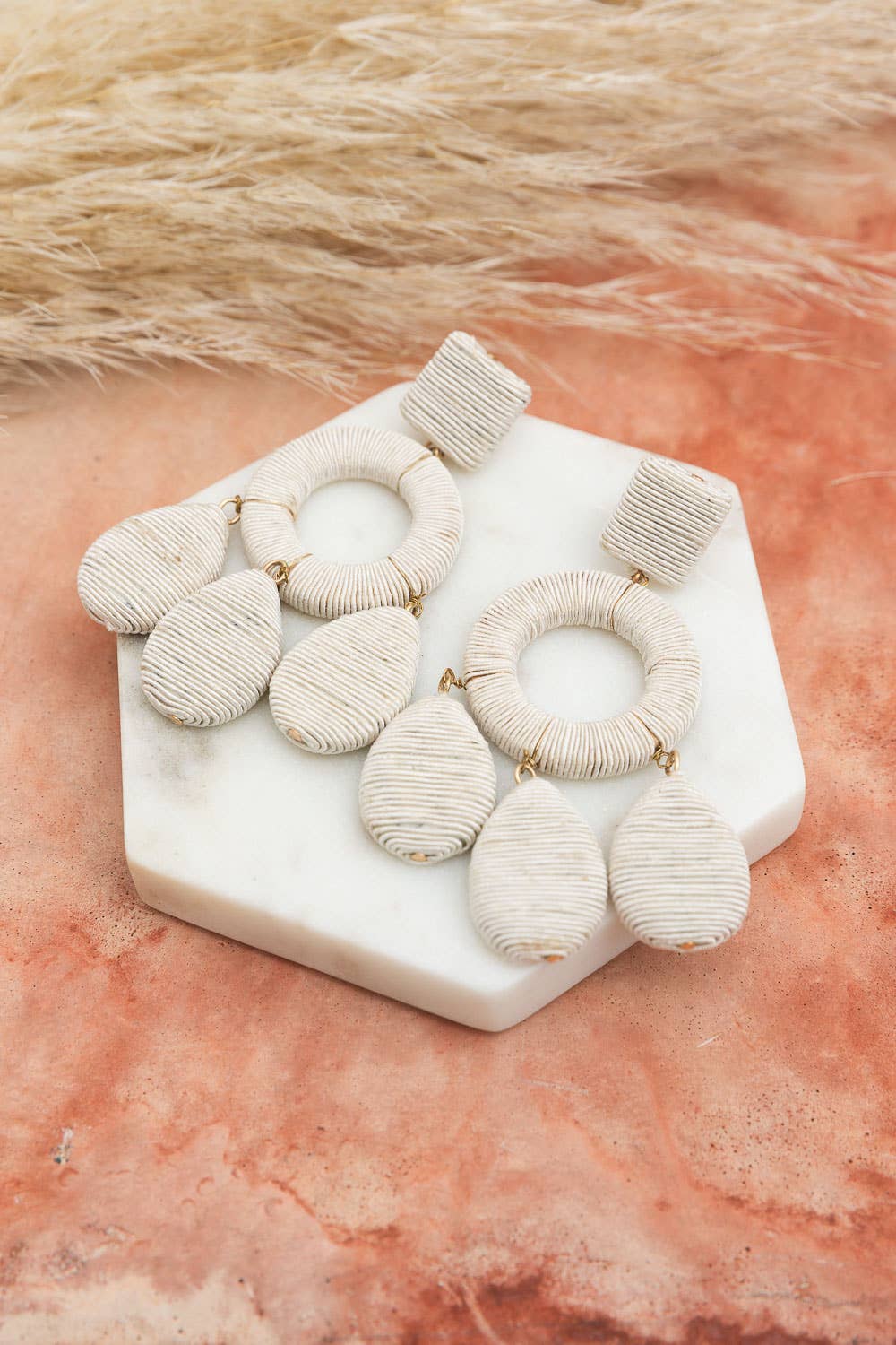 Handcrafted in India with 50% cotton thread and 40% mango wood, these unique earrings are made with 10% wood for a truly one-of-a-kind design.