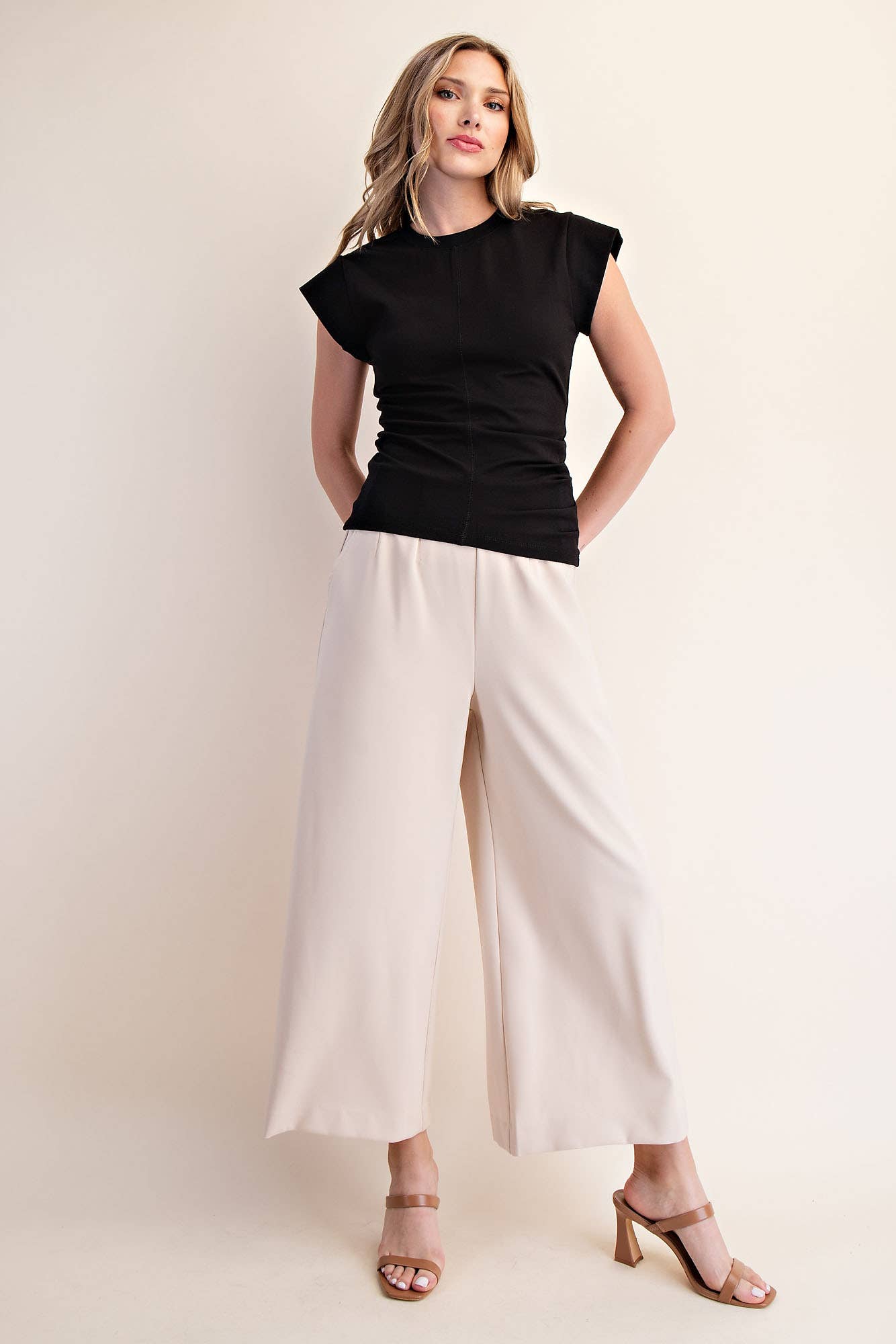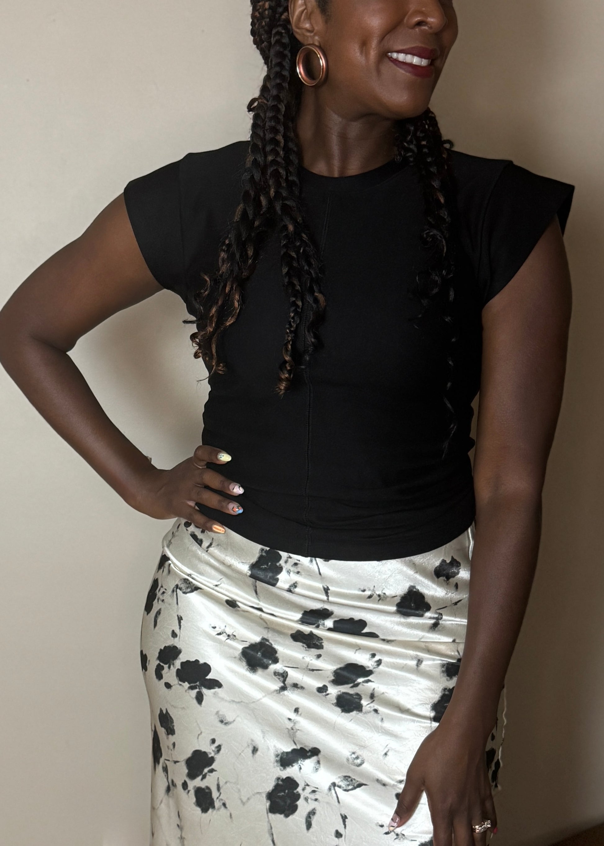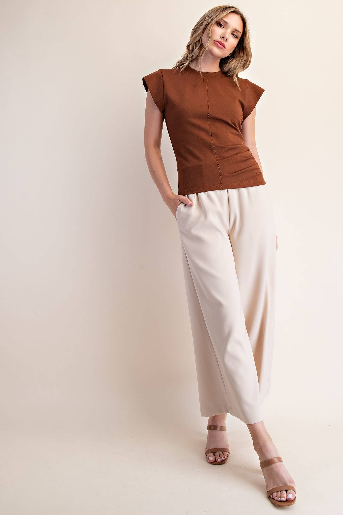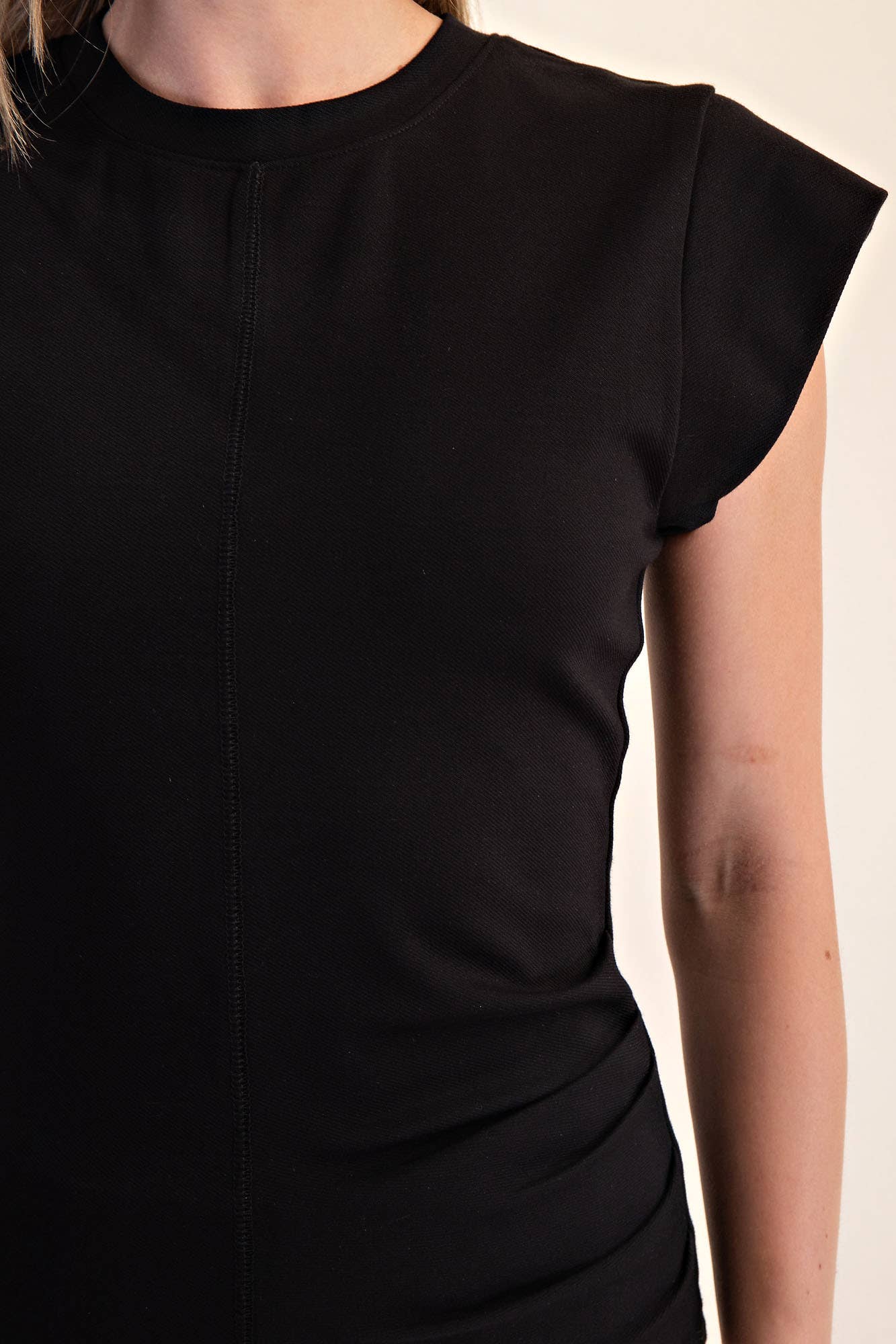 Clean lines, subtle structure, and just the right amount of stretch — the Ceci Structured Cap Sleeve Top is your polished essential for fall. This fitted silhouette features modern cap sleeves and a center seam detail for a sleek, elevated look. Fabric is slightly textured and structured for a fit that holds you in! Perfect for pairing with tailored pants, skirts, or layered under blazers. Fits true to size.