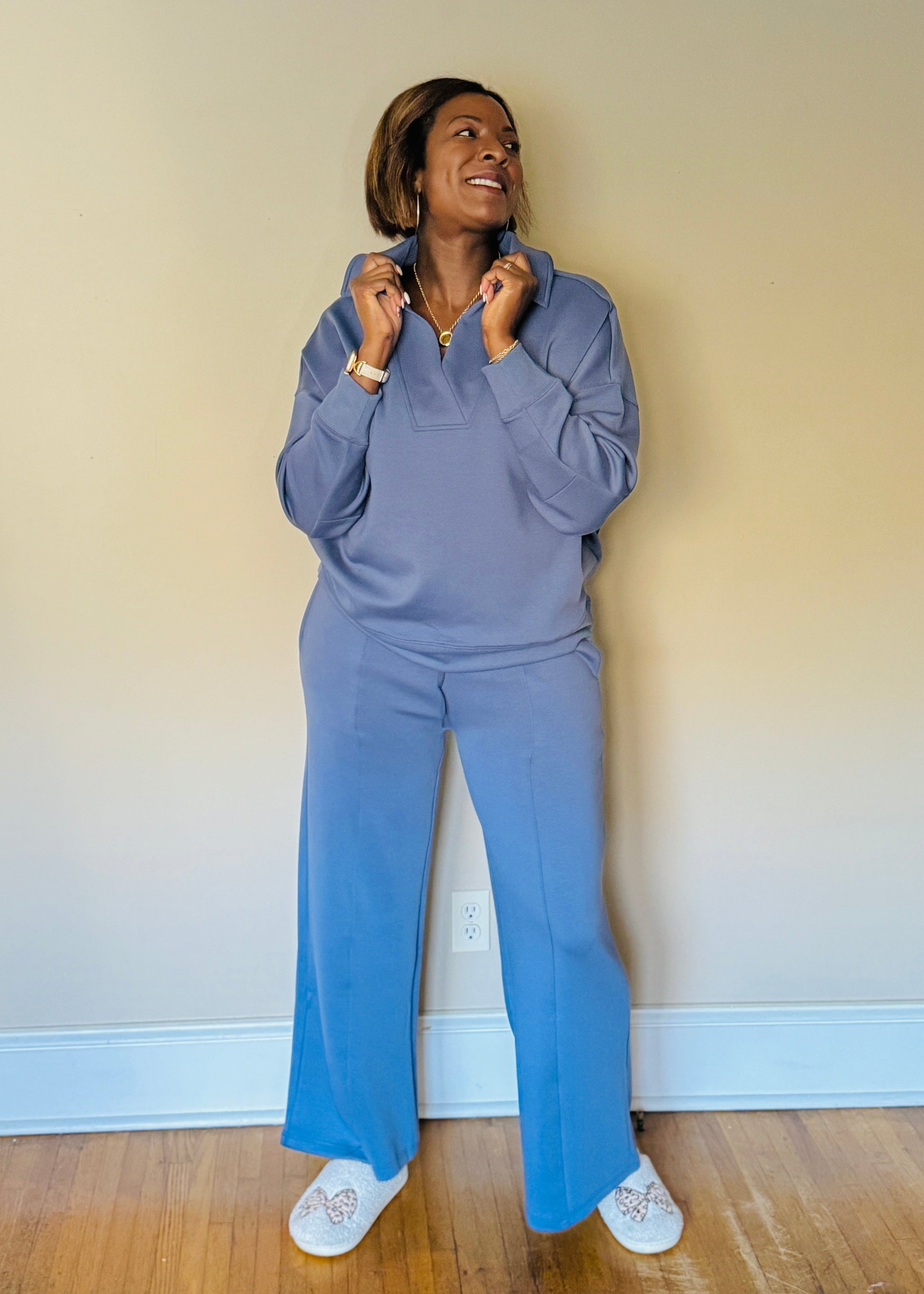 Collared Wide-Leg Pullover & Pant Set – Cozique Soho Set