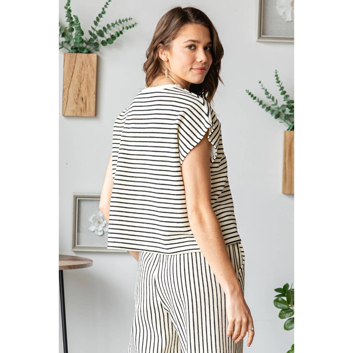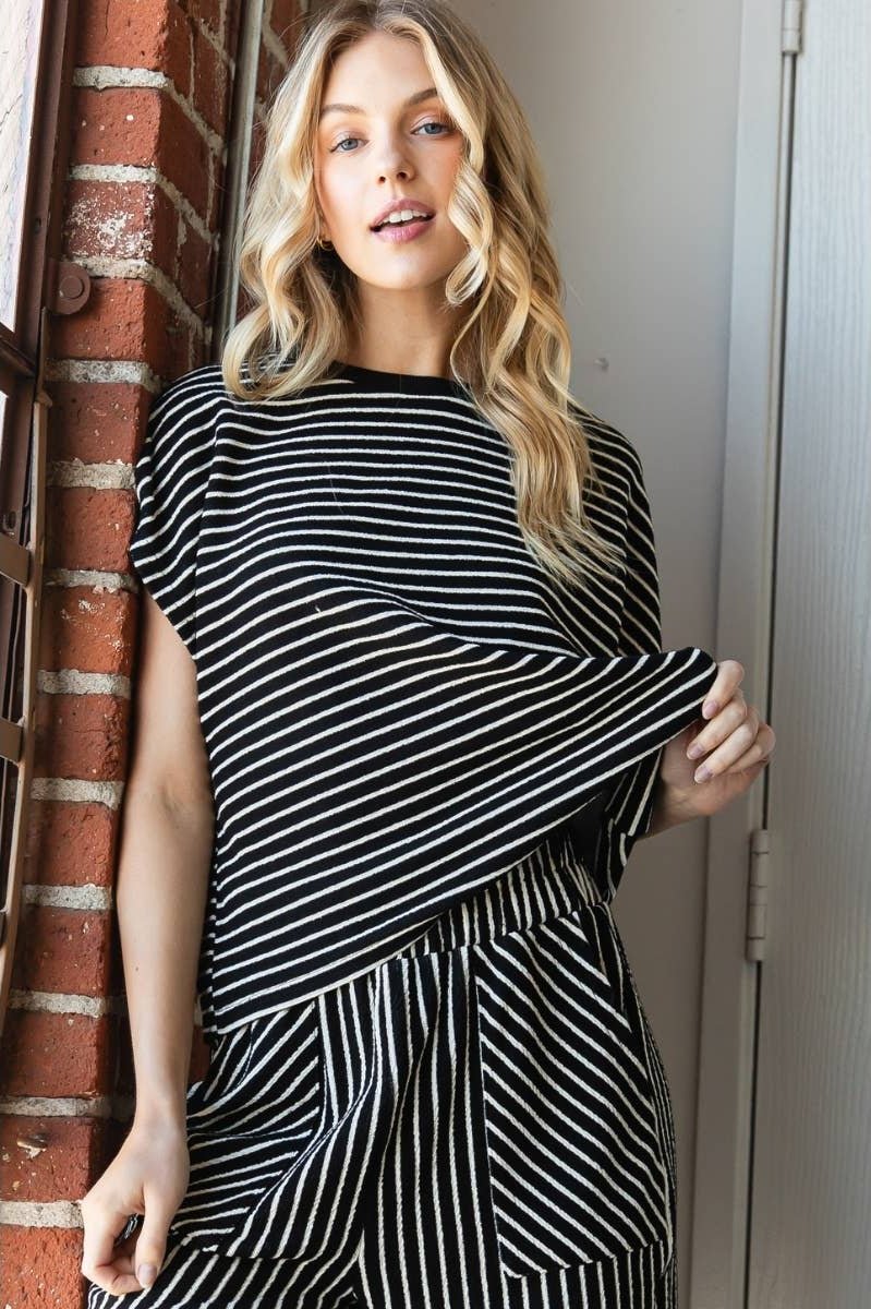 Sydney Stripe Texture Knit Drop Shoulder Top