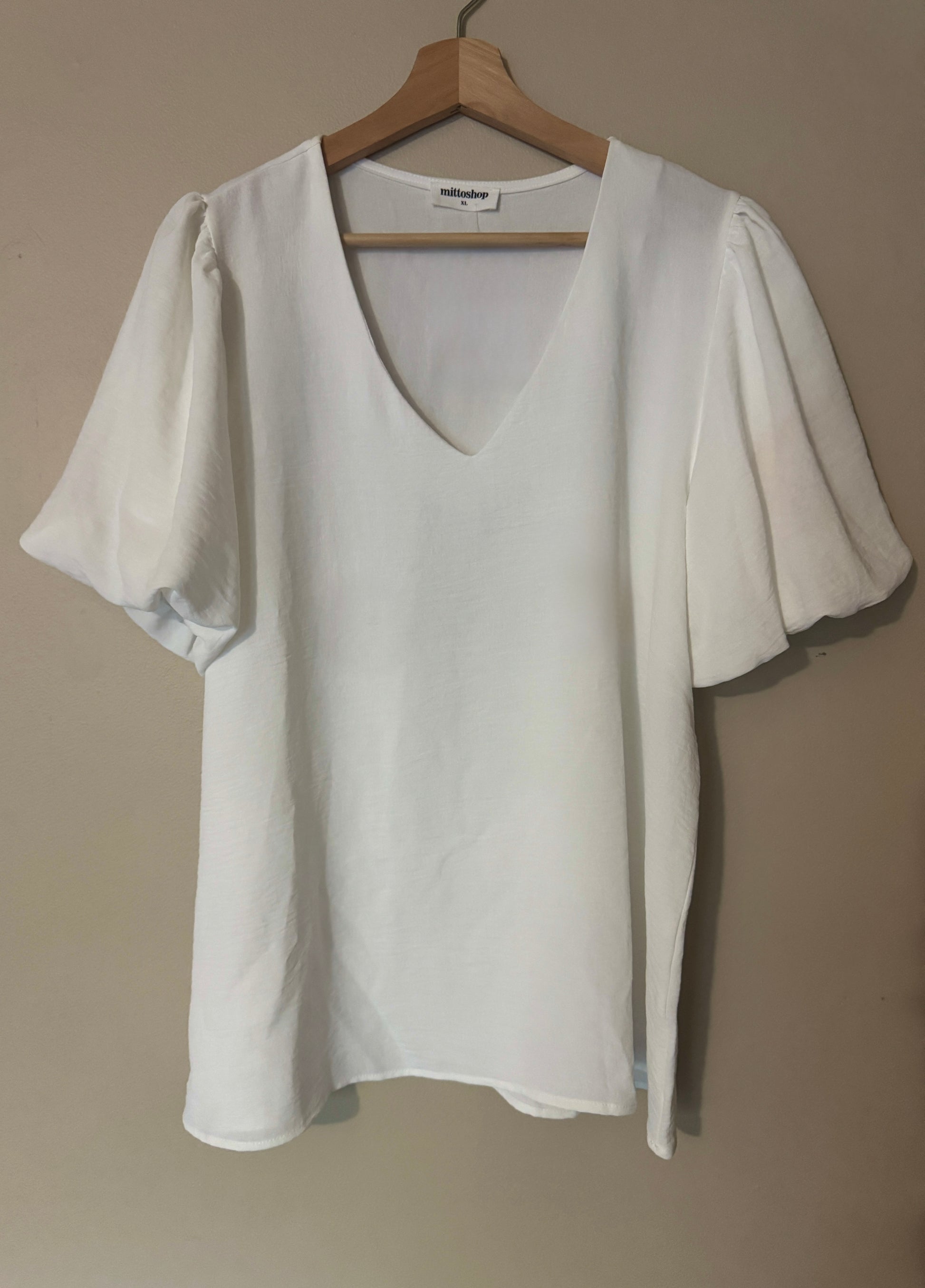 Stay cool and comfortable all day with our PLUS AIRFLOW V-NECK BUBBLE SLEEVE TOP. Made with breathable airflow woven fabric, this top features a flattering V-neck and playful bubble sleeves. A perfect blend of style and comfort!
