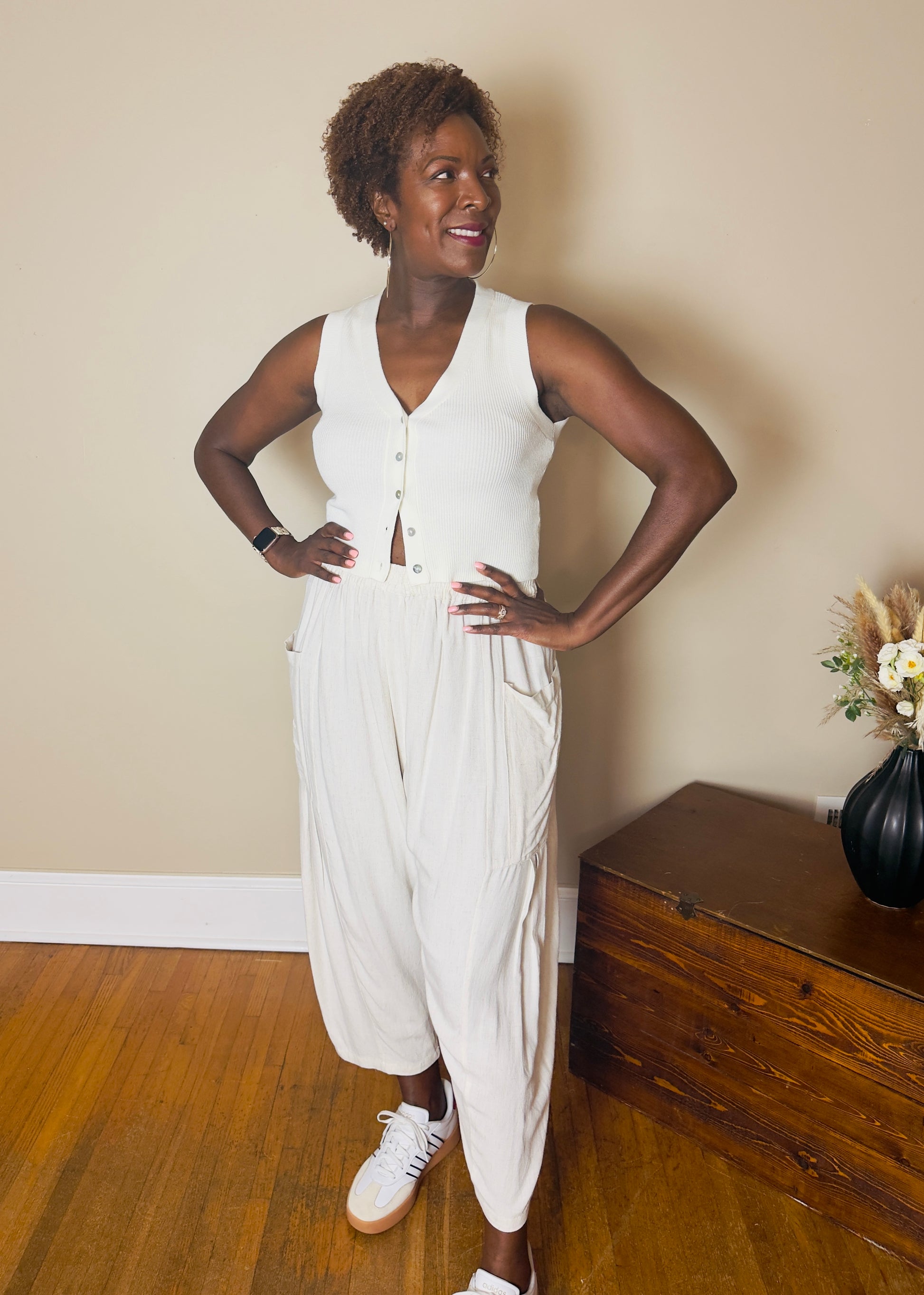 Relaxed Barrel Style Linen Blend Pants with Pockets